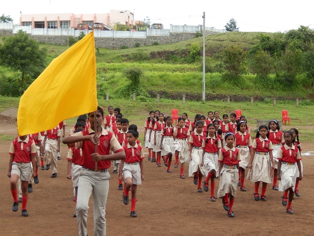 march fast by the school students. the school is celebrating the