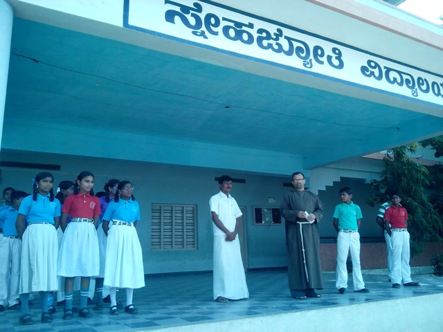 Sneha Jyothi Vidyalaya rejoices with a donor viz. Basavaraj, who