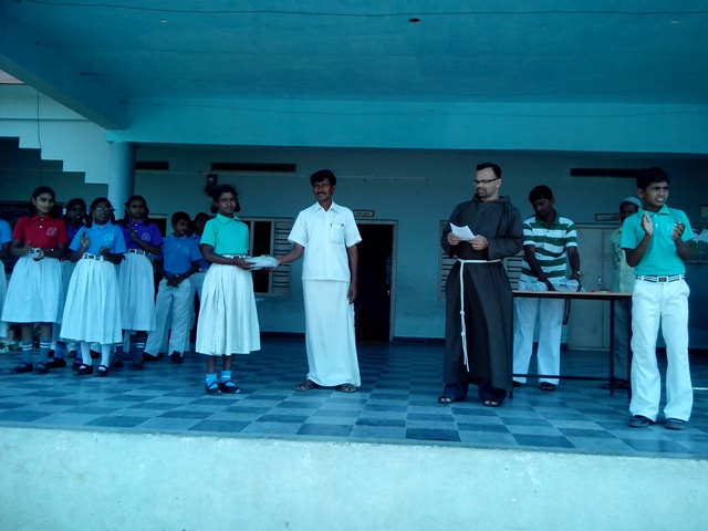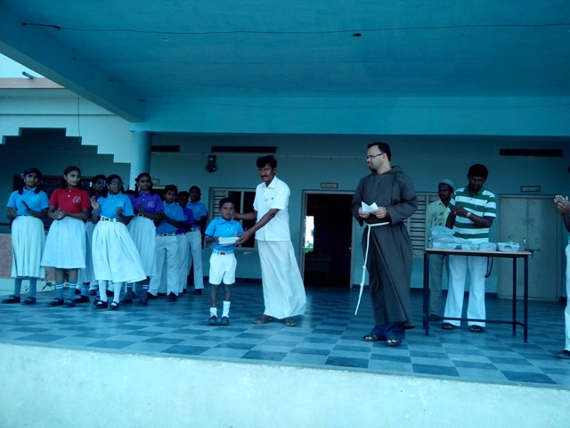 distributed books, notebooks and writing materials. He said that he was