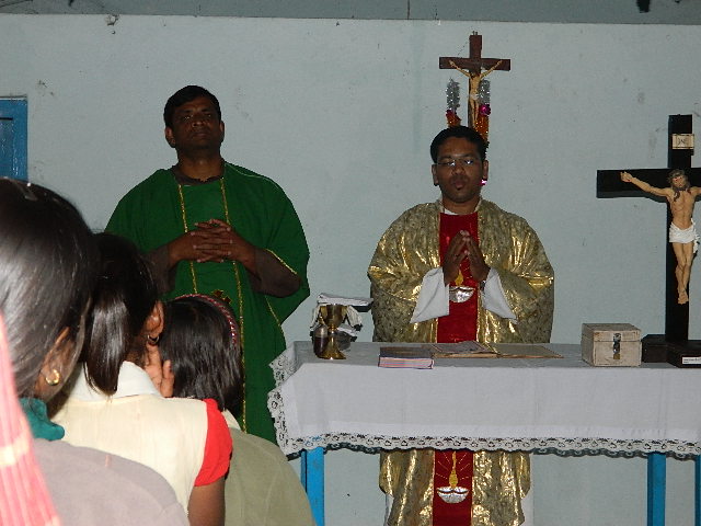 SOMELMN MASS BEFORE THE CROSS IS BEING SHIFTED TO ANOTHER VILLAGE.