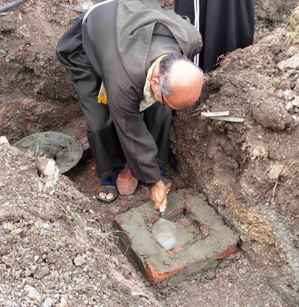 foundation stone for the toilet project of the school. Looking around the